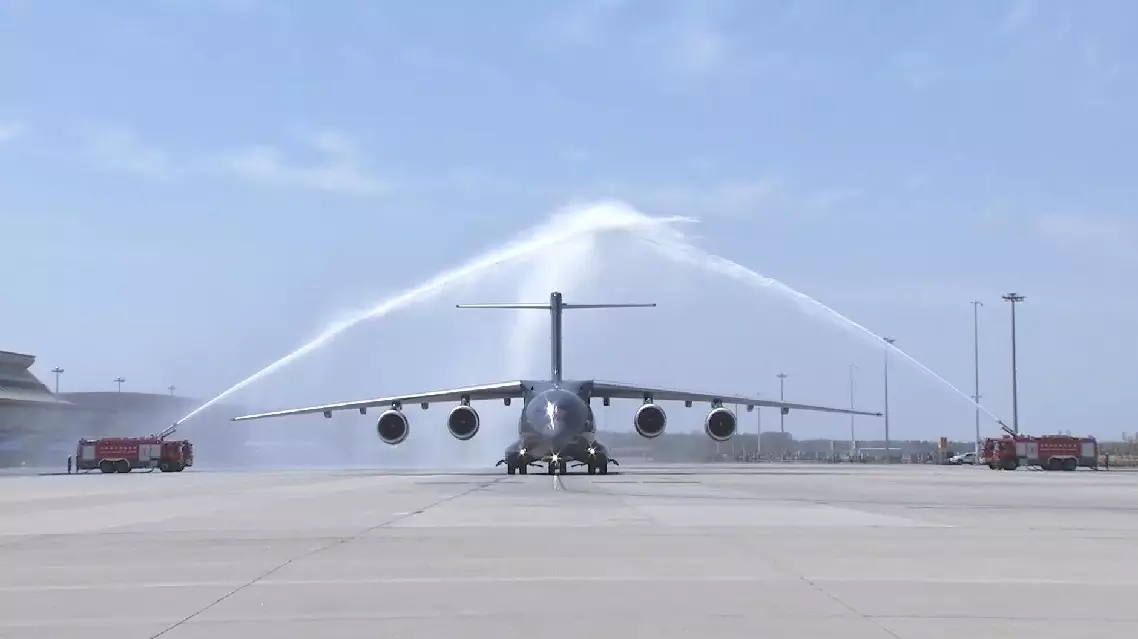 After it entered China's airspace, the Y-20B transport aircraft was escorted by four J-20 fighter jets.