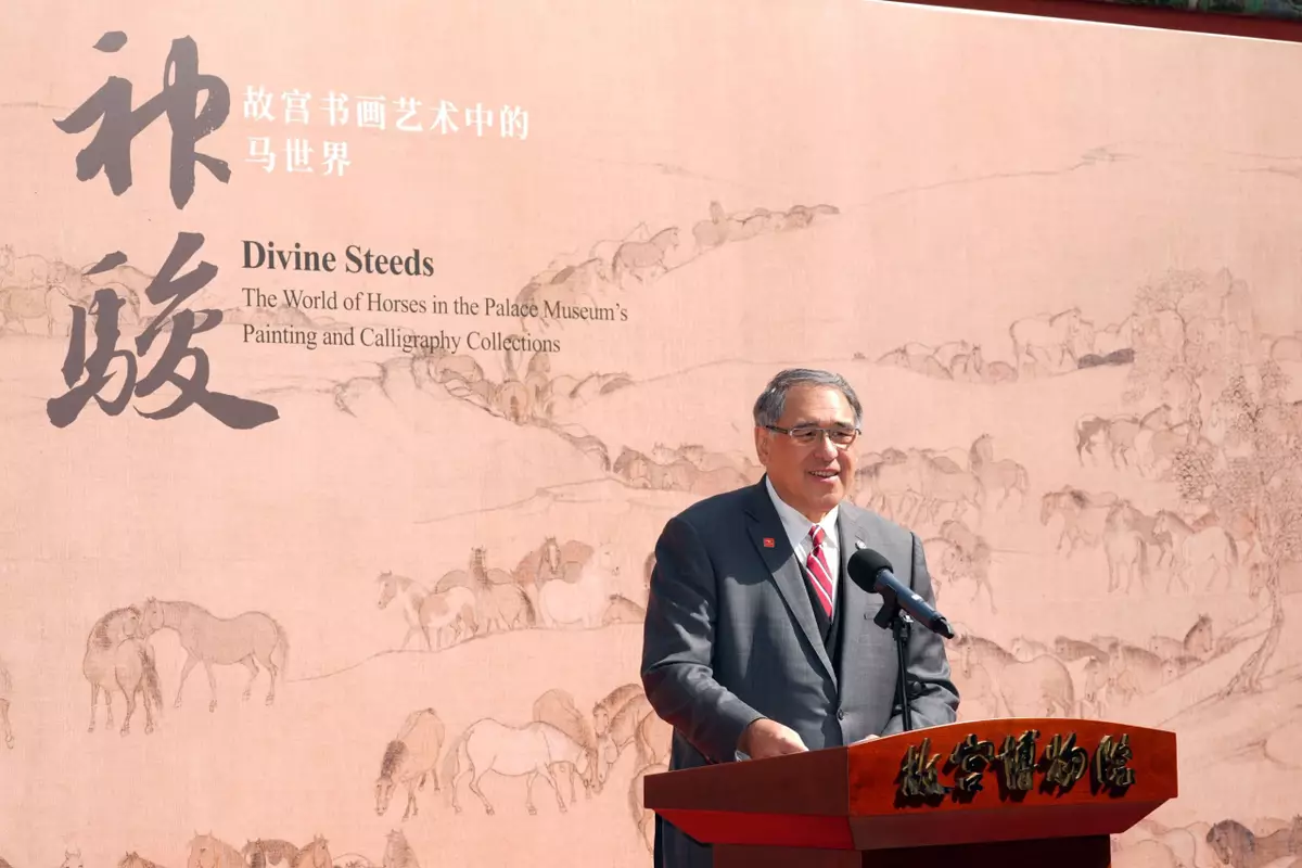 The opening ceremony of the “Divine Steeds: Horses in Painting and Calligraphy of the Palace Museum” exhibition was held in the Hall of Literary Brilliance at the Palace Museum. Exclusively sponsored by the Institute of Philanthropy (IoP) and organised by the Palace Museum, the exhibition presents more than 50 paintings and calligraphic works from the Palace Museum's collection, including 20 Grade One national treasures, illustrating the bond between horses and humans and the special role of the horse in Chinese culture.
