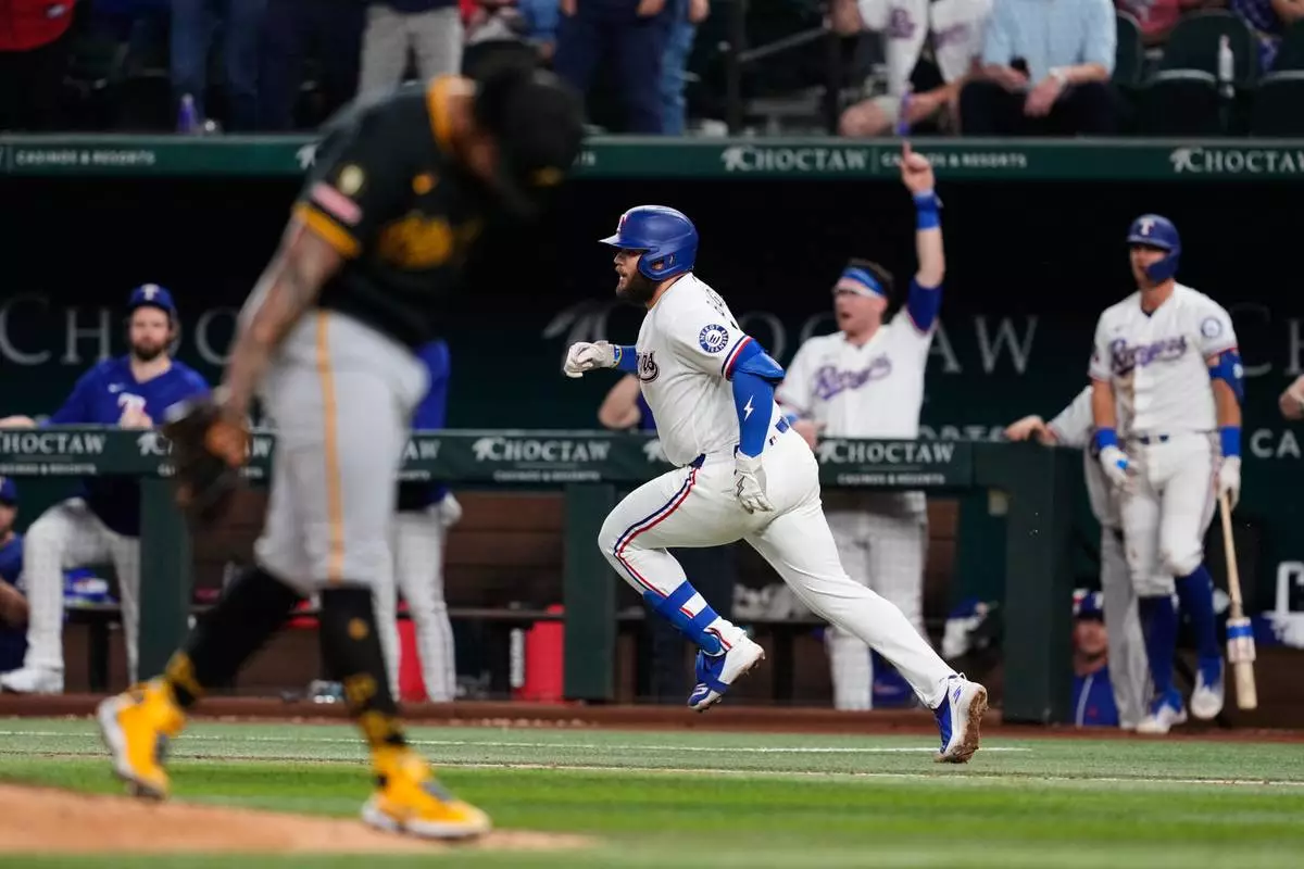 ARLINGTON, Texas (AP) — Oneil Cruz had the hardest-hit homer in the majors this season, a three-run shot off the top of the right-field foul pole in the ninth inning that powered the Pittsburgh Pirates to an 8-4 win over the Texas Rangers on Wednesday night.