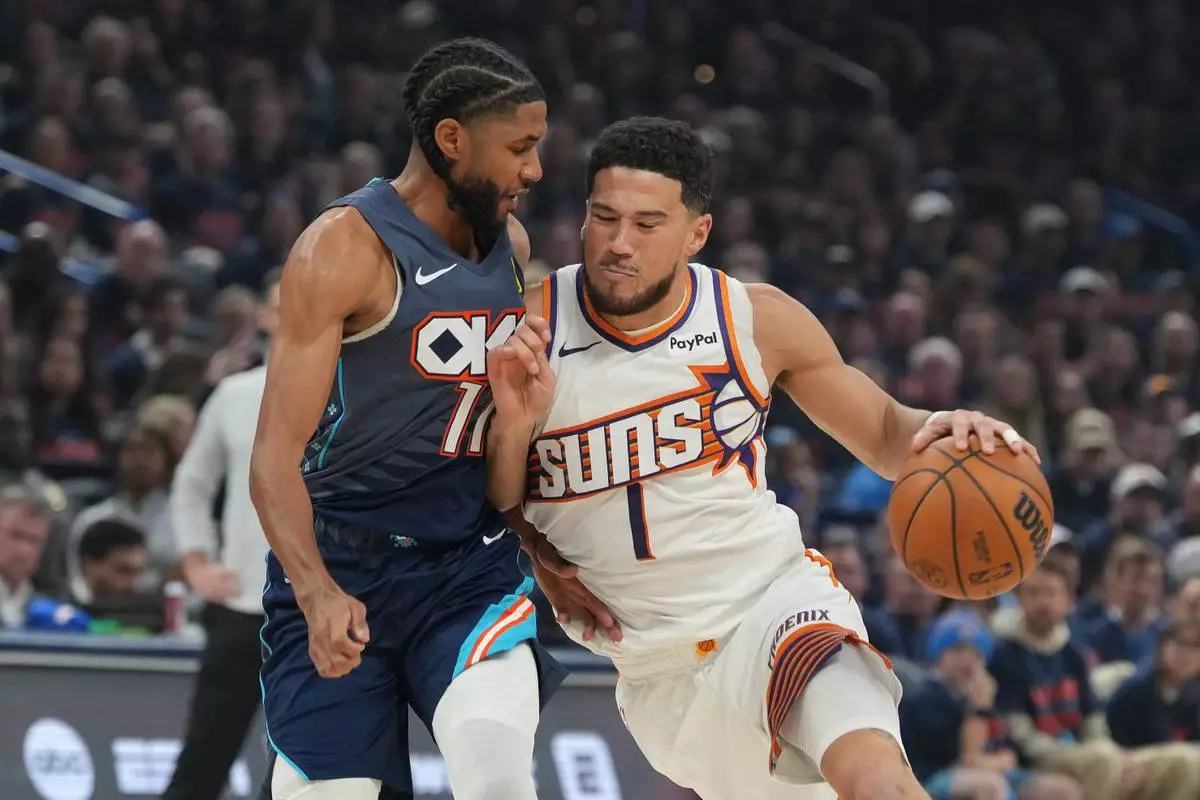 Oklahoma City pushed the lead to 26 points early in the fourth quarter before Phoenix made a final push. Booker made a pull-up jumper and was fouled. He missed the free throw, but he rebounded and made a mid-range jumper to cut Oklahoma City's lead to 110-97 with five minutes to play. The Suns got no closer than 10 points.