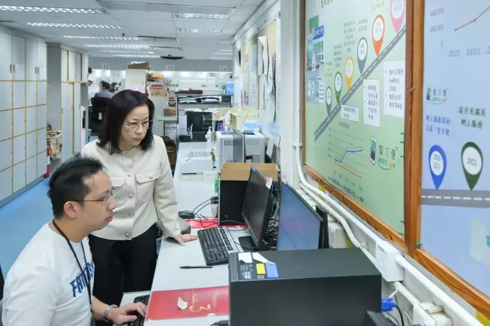 Miss Tse was pleased to note that the operation of the appointment booking system has largely been stable and smooth since its rollout. Applicants may follow system instructions to make appointments and submit applications at selected Licensing Offices in a fair and orderly manner, saving queuing time on-site. She also observed how the current appointment system with applicants' real-name registration conducts identity verification through preliminary vetting of identity documents and driving licences uploaded by applicants, aided by artificial intelligence (AI) technologies, while counter staff verify the originals of supporting documents required on-site. If documents are in order, Hong Kong Full Driving Licences can be issued on the same day.