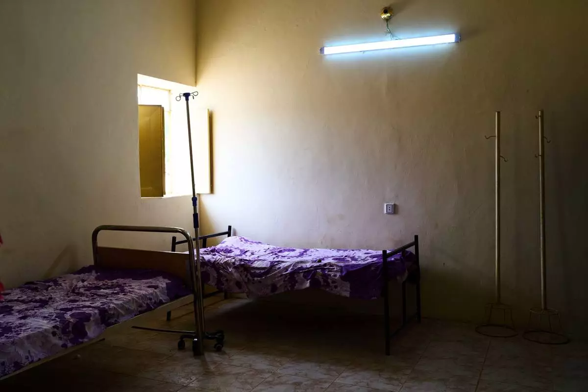 Empty beds at a public health clinic in Qoz Nafisa village, Khartoum state, Sudan, Wednesday, April 22, 2026. (AP Photo/Bernat Armangue)