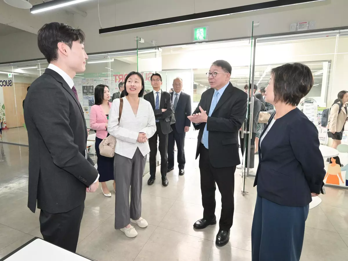 In the morning, the delegation visited Kyung Hee University's Seoul Campus. Established in 1949, Kyung Hee University is a top-tier private university in Korea, renowned for its programmes in humanities, international studies, medicine, hospitality and tourism. The delegation met with the university's president Kim Jin-sang and other representatives to learn about the university's self-financing operation model and experience in achieving financial sustainability. They also visited various facilities on campus, including the start-up centre, and listened to a briefing by the centre's representatives on how it assists high value-added technology start-ups in fields such as artificial intelligence, robotics, and biomedicine to develop their businesses through different programmes.