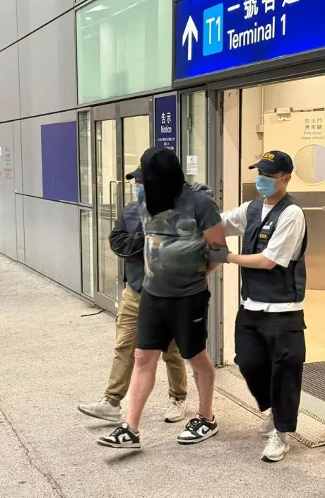 Hong Kong Customs yesterday (April 22) detected a dangerous drug case and seized a total of about 10 kilograms of suspected ketamine with a total estimated market value of about $3.9 million at Hong Kong International Airport. Photo shows the arrested man (centre) involved in the case. Source: HKSAR Government Press Releases