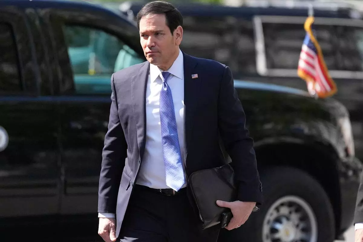 Secretary of State Marco Rubio arrives at the West Wing of White House in Washington, Thursday April 23, 2026. (AP Photo/Jacquelyn Martin)
