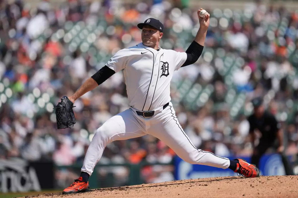 Detroit Tigers pitcher Tarik Skubal throws against the Milwaukee Brewers during the fourth inning of a baseball game Thursday, April 23, 2026, in Detroit. (AP Photo/Paul Sancya)