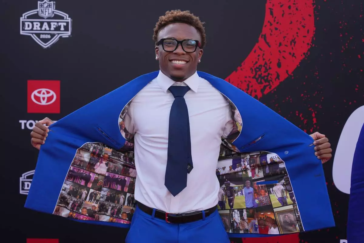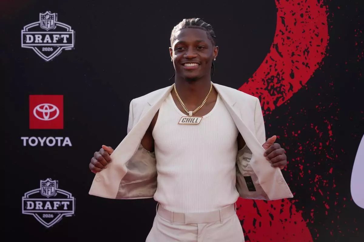 Fernando Mendoza, the quarterback who led Indiana to a national championship, wasn't at the draft. Alabama quarterback Ty Simpson is attending, and he went with a classic suit with white shirt. His teammate, offensive lineman Kadyn Proctor, took a different approach with dental jewelry he showed off on the red carpet.