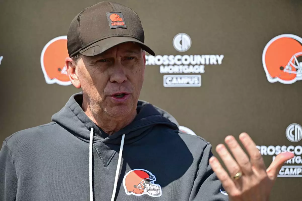 Cleveland Browns head coach Todd Monken speaks to the media after NFL football practice, Tuesday, April 21, 2026, in Berea, Ohio. (AP Photo/David Dermer)