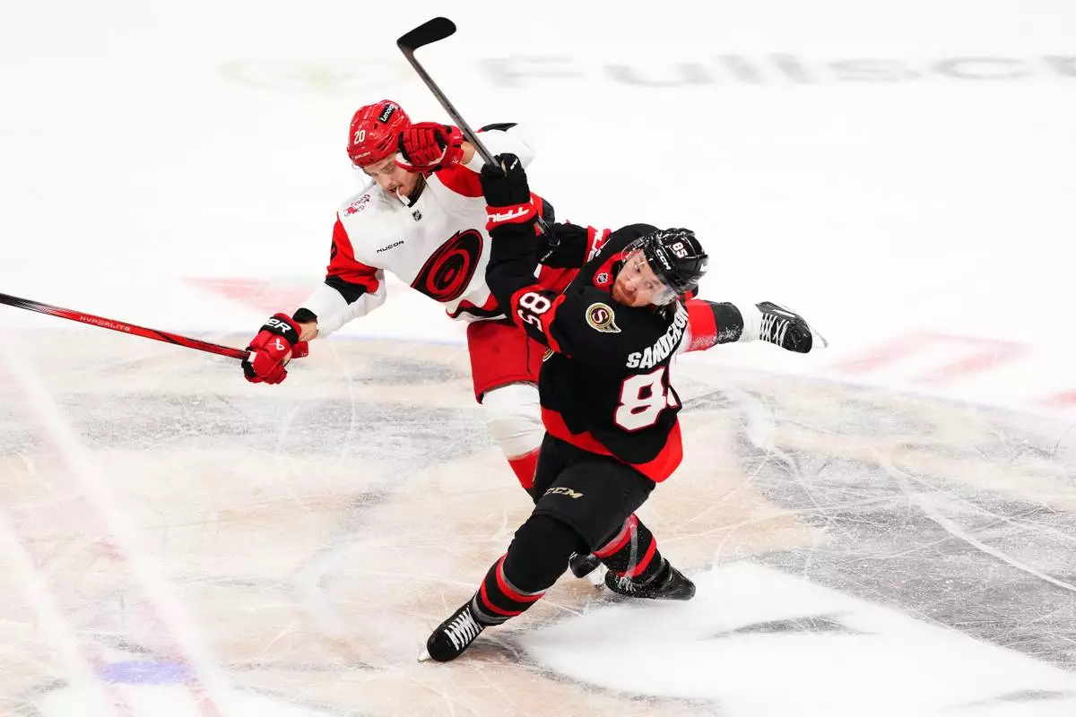 OTTAWA, Ontario (AP) — Jackson Blake broke a tie late in the second period, Frederik Andersen made 21 saves and the Carolina Hurricanes beat the Ottawa Senators 2-1 on Thursday night to take a 3-0 lead in the first-round series.