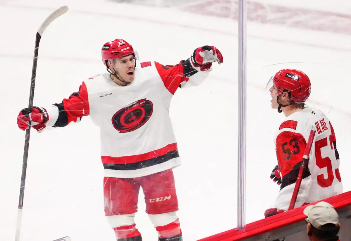 Logan Stankoven also scored for Carolina, and Taylor Hall had two assists.