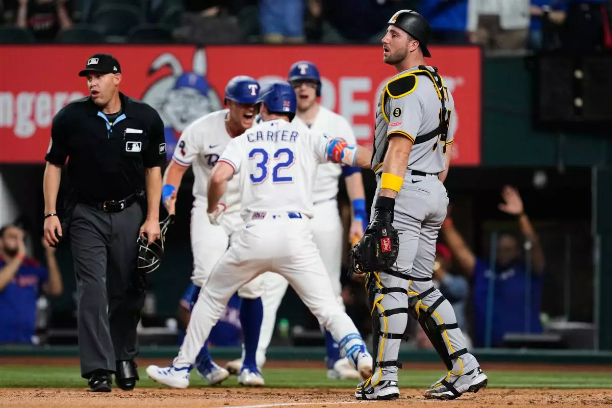 ARLINGTON, Texas (AP) — Jacob deGrom struck out 10 over 5 2/3 innings, Evan Carter hit an inside-the-park home run while Corey Seager went deep and the Texas Rangers beat the Pittsburgh Pirates 6-1 on Thursday night in the rubber match of their three-game series.