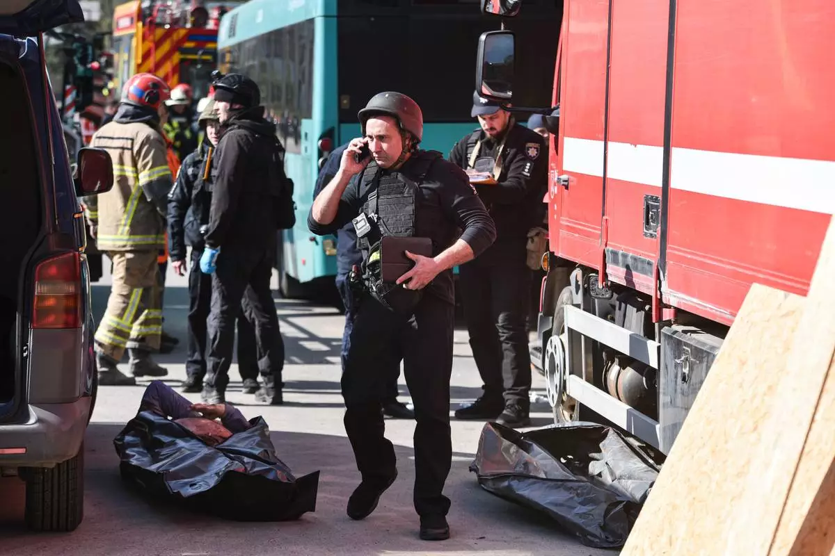Police inspect a body recovered from the rumble of a residential building destroyed by a Russian strike, in Dnipro, Ukraine, Saturday, April 25, 2026. (AP Photo/Mykola Synelnykov)