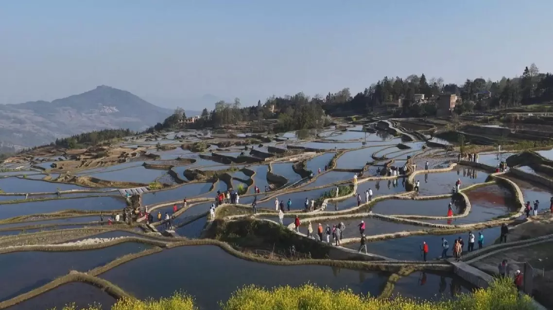The terraces, now entering the spring ploughing season, have become a major draw for visitors with their mirror-like waters and vibrant rural scenes, boosting cultural and agricultural economy in Yuanyang.