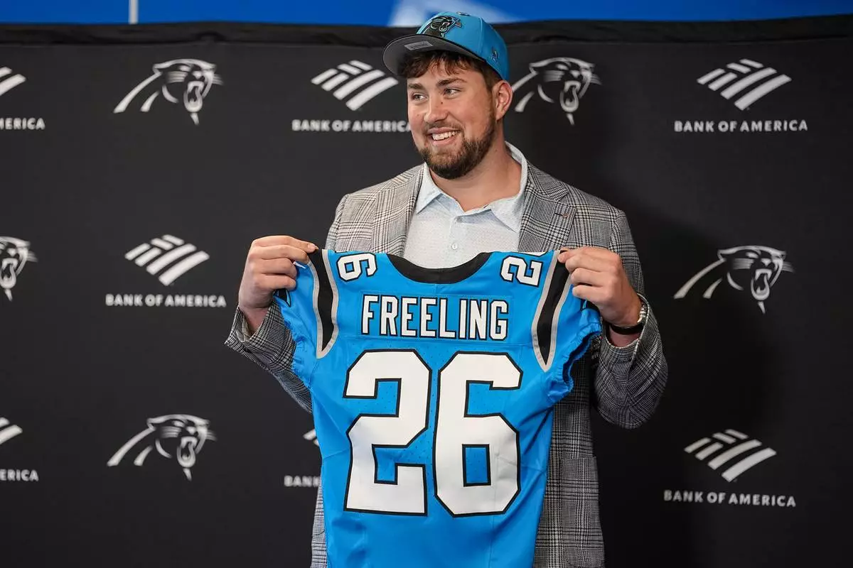 Morgan, who took wide receivers in the first round the previous two years, selected 6-7, 315-pound offensive tackle Monroe Freeling from Georgia at No. 19 overall, giving the Panthers more options at a position with some question marks.