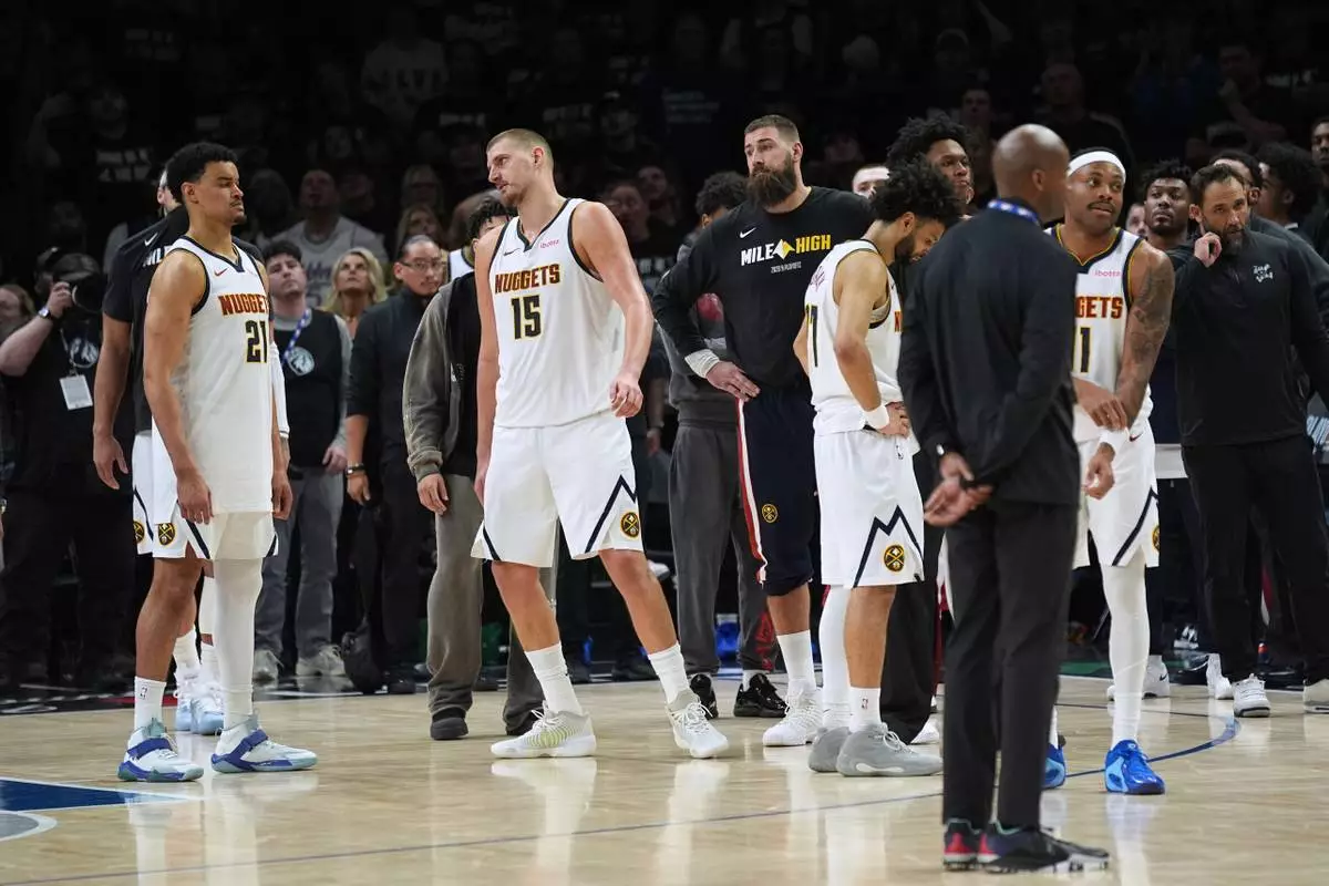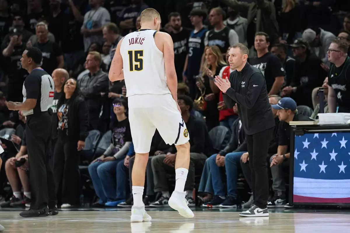 MINNEAPOLIS (AP) — The Denver-Minnesota rivalry took another dramatic turn in the closing seconds of Game 4 on Saturday, when Nuggets star Nikola Jokic confronted Jaden McDaniels after he took an uncontested layup with the Timberwolves on the way to victory and a 3-1 lead in the first-round NBA playoff series.