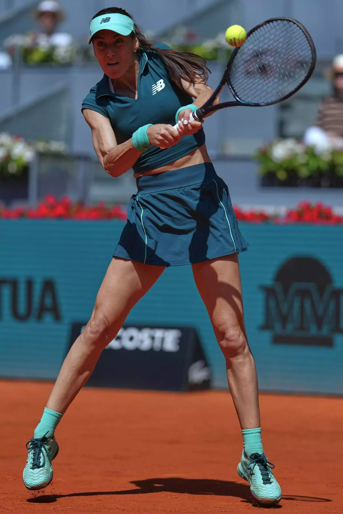 Sorana Cirstea of Romania returns the ball to Coco Gauff of the U.S. during the Madrid Open tennis tournament in Madrid, Sunday, April 26, 2026. (AP Photo/Manu Fernandez)