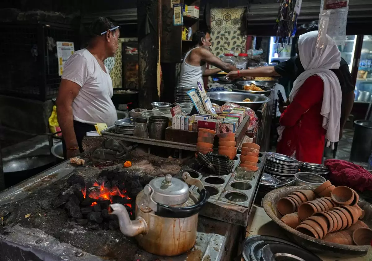 Workers cook over a coal fire at a small restaurant due to a shortage of commercial gas in Prayagraj, India, Friday, April 24, 2026. (AP Photo/Rajesh Kumar Singh)