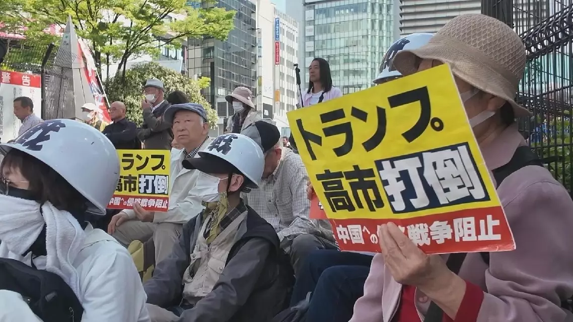 "As for the Takaichi administration, there is a part of it. That is using military means to cover up domestic problems, while also intensifying authoritarian tendencies, with an aim to seek support by stirring up authoritarian sentiments," said a protester.