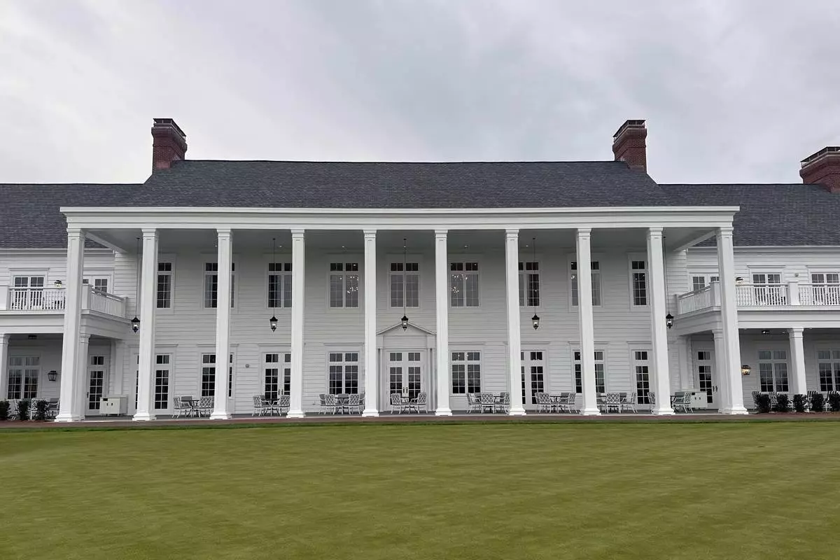 The clubhouse overlooks the South Course, which Ben Hogan called “The Monster” after winning the 1951 U.S. Open. The clubhouse is the centerpiece of a project that cost nearly $100 million and it looks a lot like the previous facility, with 10 pillars on a veranda.
