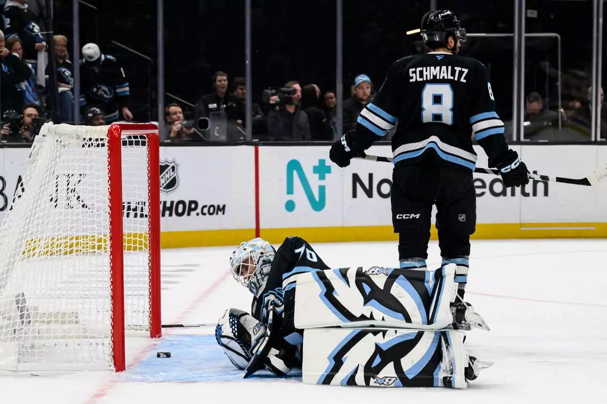 Facing a three-goal deficit, Utah’s Nick Schmaltz and Ian Cole scored 29 seconds apart in the second period to set the Mammoth’s comeback in motion. Schmaltz got Utah on the board at the 8:04 mark, and Cole followed with a 50-foot slapshot at 8:33 of the second.