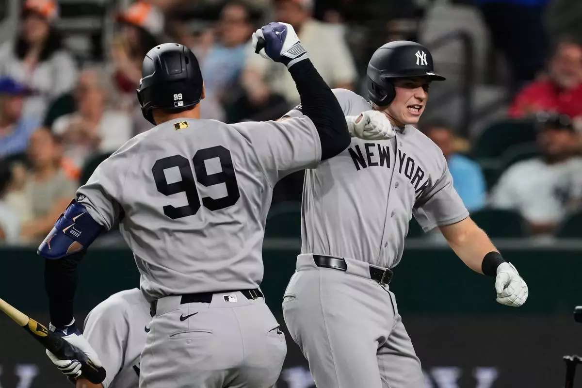 ARLINGTON, Texas (AP) — Aaron Judge allowed Ben Rice to match his home run total for only a few pitches.
