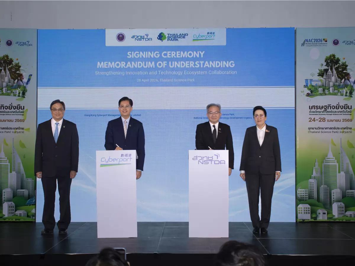 HONG KONG SAR - Media OutReach Newswire - 28 April 2026 - Cyberport today signed a Memorandum of Understanding (MoU) with National Science and Technology Development Agency (NSTDA) acting through Thailand Science Park (TSP), to establish a strategic partnership that strengthens innovation and technology (I&T) collaboration between Hong Kong and Thailand.