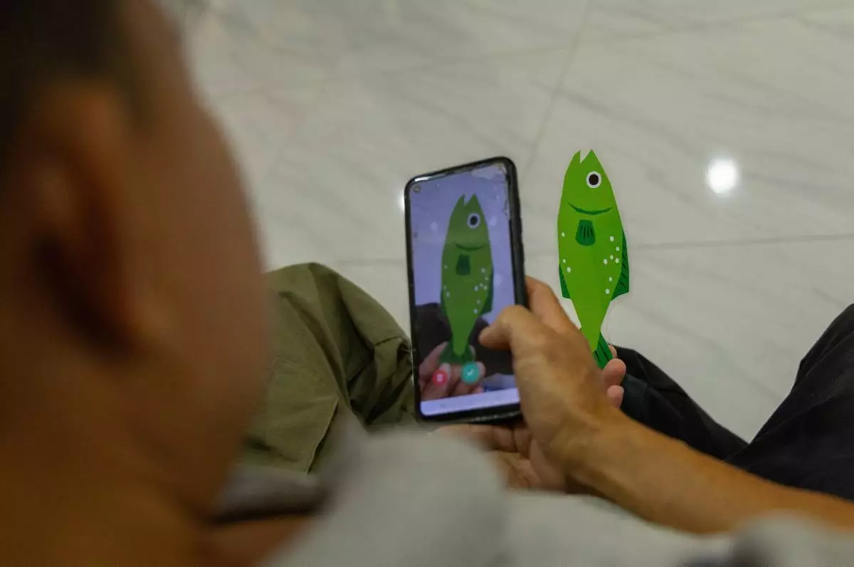 A fisherman practices using a new fish safety app during a training session in Chiang Saen, Thailand, on Feb. 17, 2026. (AP Photo/Anton L. Delgado)