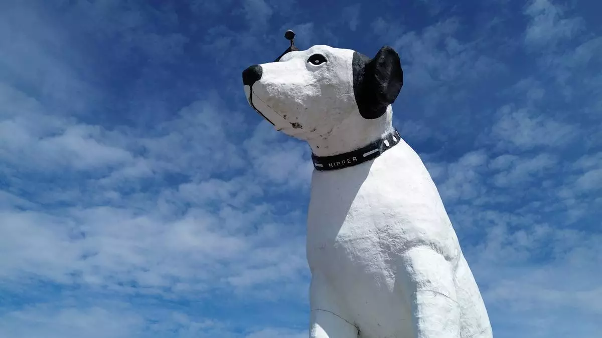 Nipper, a 28-foot (9-meter) tall white dog with black ears has sat conspicuously atop a warehouse for almost seven decades — recreating the famous image of a terrier listening attentively to a phonograph that was long used by electronics and communications company RCA.