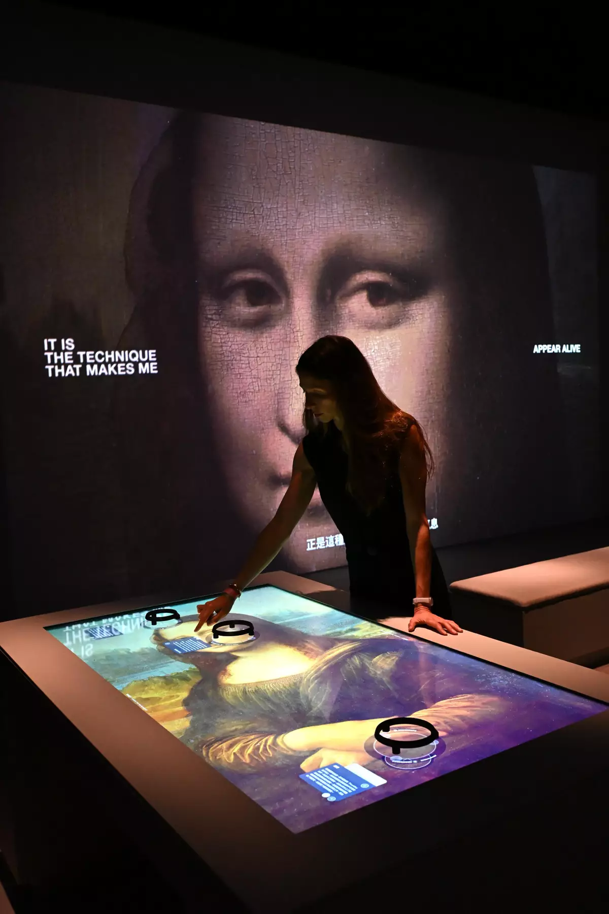 The first section of the exhibition "Meet Mona Lisa", is centred on Leonardo da Vinci's masterpiece, the "Mona Lisa". The Musée du Louvre and the Grand Palais Immersif specially created a multimedia immersive experience for Hong Kong. Composing the extraordinary journey of this portrait spanning more than 500years into six chapters, Mona Lisa herself narrates the captivating stories behind that mysterious smile of hers, in a monologue.