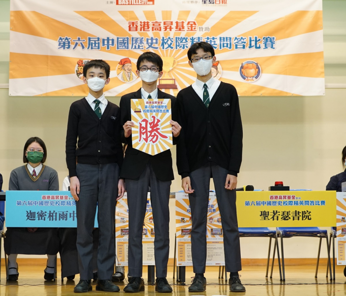 由高昇基金贊助、《巴士的報》主辦的第六屆「中國歷史校際精英問答比賽」於3月20日舉行中學組初賽(二),經過激烈角逐,聖若瑟書院、聖公會林護紀念中學、英華書院和聖保羅書院四隊闖入複賽。