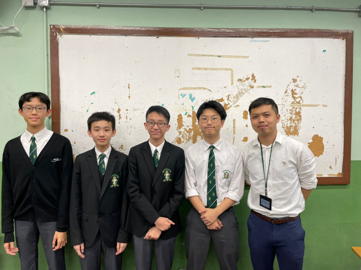 聖若瑟書院參賽團隊大合照。左起:章浩樺、陳侃言、張皓彥(隊長)、于川清、楊名謙老師。