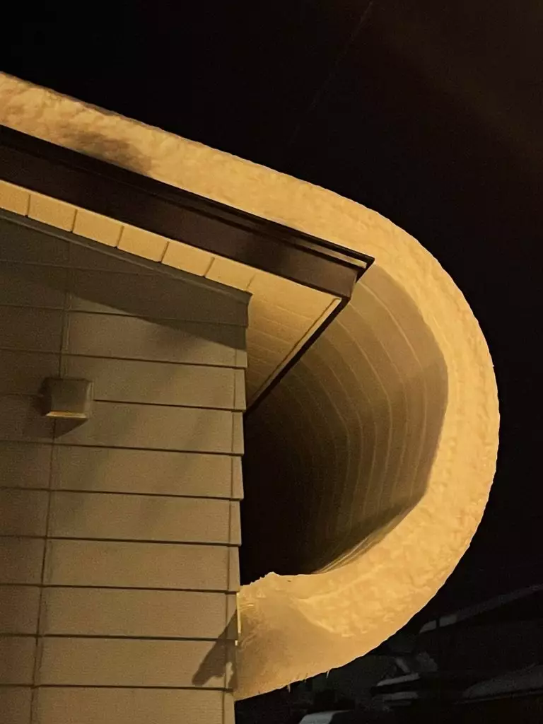一場大雪過後,房檐通常都變成白皚皚一片,最近日本網上流傳的一張房檐積雪相片就引起熱議,原來積在房檐上的雪整片滑落,大部分的積雪都會斜斜滑下後直接墜地,但萬萬沒有想到是 ,相片中的一大片積雪滑到一半,竟突然開始「內彎」往牆面移動,讓人見了會覺得它堅持不肯落地,奇特的畫面一經曝光,讓網友們大呼不可思議!