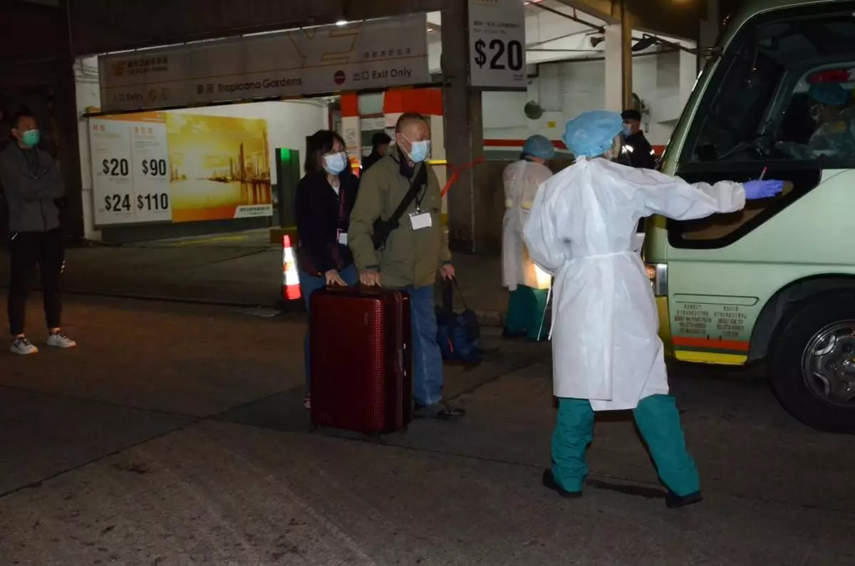 政府專家顧問、港大微生物學系講座教授袁國勇下午先後到大窩口邨富強樓以及黃大仙豪苑視察。袁國勇視察黃大仙豪苑後交代視察結果,表示豪苑第一座E室出現垂直傳播,居民應該撤離。他又相信今次傳播源自於最先確診的E室居民,購自旺角通菜街I Love Rabbit的倉鼠播疫。3樓至27樓的居民分批登上政府安排的專車前往檢疫中心接受檢疫。