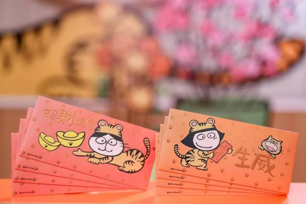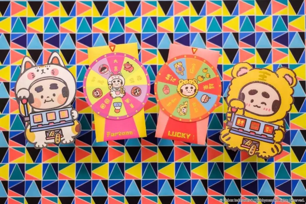 利是封有招財貓及行運虎款式,由呆萌江大叔坐鎮,扮鬼扮馬為大家帶來滿滿祝福,只要拉動「老虎機」利是封背後的祝福卡,老虎機上就會轉動出不同的祝福「潮」語;「幸運輪」利是封設有可滾動的幸運轉盤,財運、事業運、桃花運,通通隨「轉」隨到。消費滿$300或800分The Point by SHKP 會員即可換領。