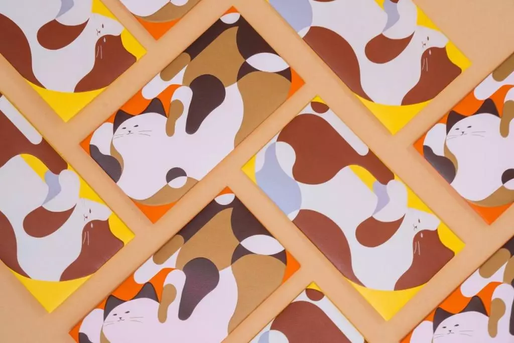 利是封配上橙色和鮮黃色,更有肥肥貓伸着懶腰。(apm)