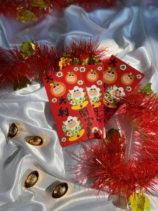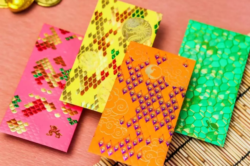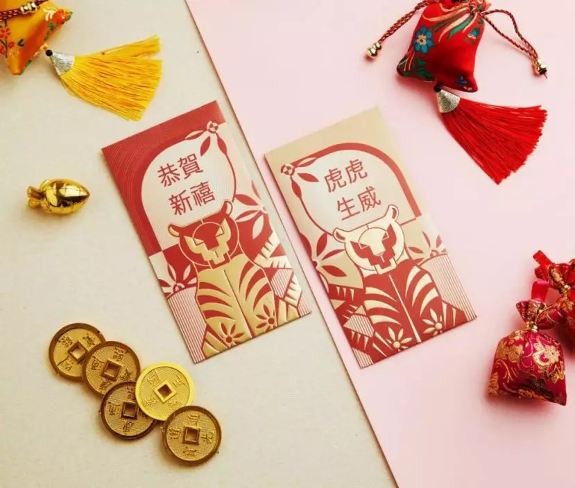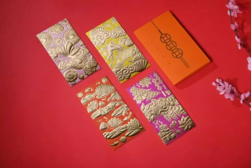 利是封配上錦鯉、靈獅、彩蝶和喜雀的金漆圖案。(HomeSquare)