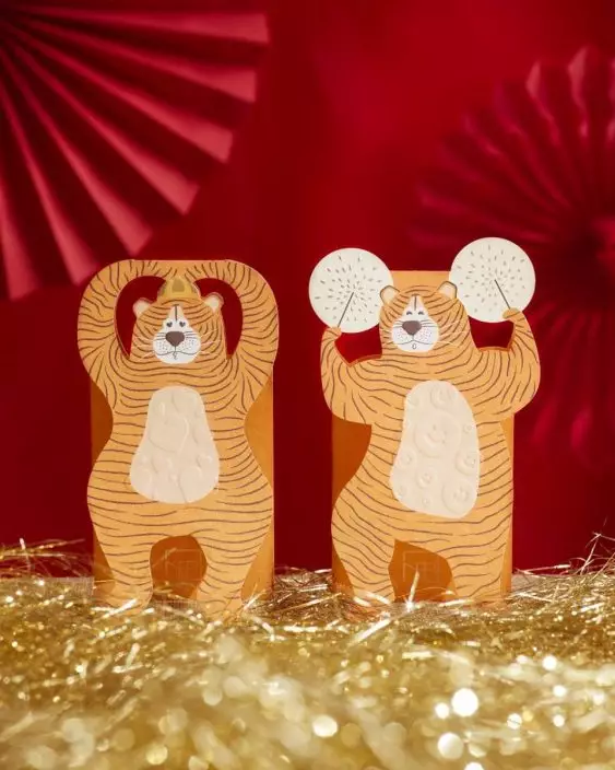 旋轉利是封每套8個,有4款不同形態的老虎。(始創中心)