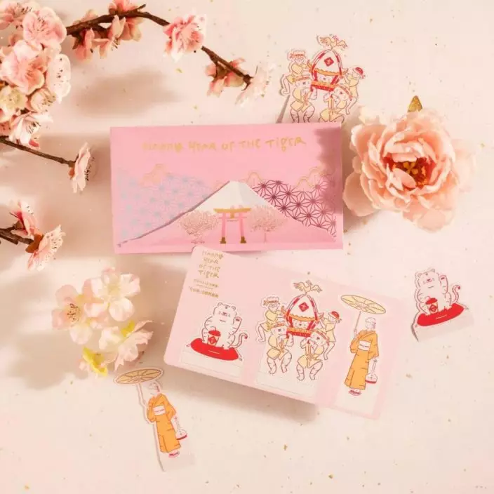 邀得台灣文青插畫家WHOSMiNG設計一套4款虎年立體利市封,立體利市封以日本富士山做3D設計,揭起富士山後,可沿虛線將招財虎、祈福神橋同日本少女圖案撕下,再放到利市封的插卡位,立體感及玩味十足。只要憑即日電子消費滿指定金額$200,或800分The Point會員憑指定積分即可換領。