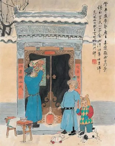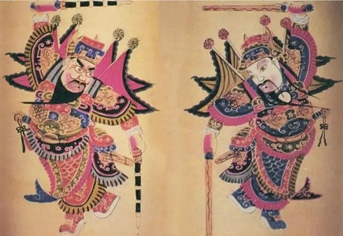 後來紙張逐漸普及,古人便開始用畫著人像的「紙符」代替「桃符」,於正月初一前夕貼在門上,作為「門神」保全家平安。