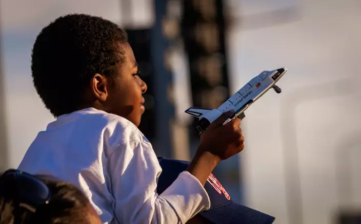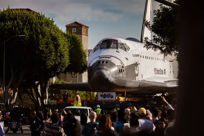 當年奮進號由一架波音747客機搭載,從北加州的愛德華空軍基地起飛,抵達洛杉磯之後在機場停留3周,再使用大型機具拖載,以時速3公里的緩慢速度,花兩天時間走過高速公路、市區街道,最終抵達加州科學中心。