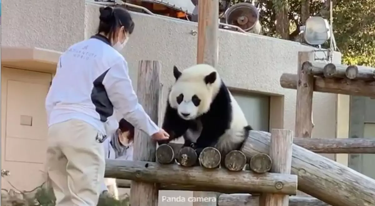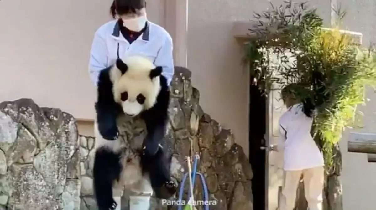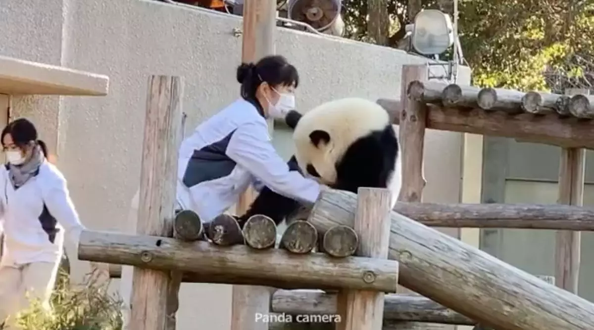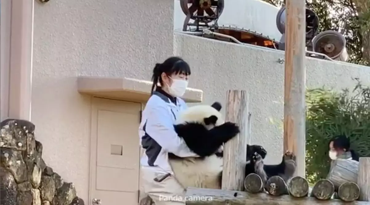 日前熊貓寶寶的放風時間結束後,飼育員準備帶牠回去休息時,牠竟然一屁股坐下並耍起小脾氣,無論飼養員怎樣哄、怎樣拉,牠都不為所動,最後飼養員只好將牠抱下爬架,牠才一臉不情願的跟着飼養員回家。