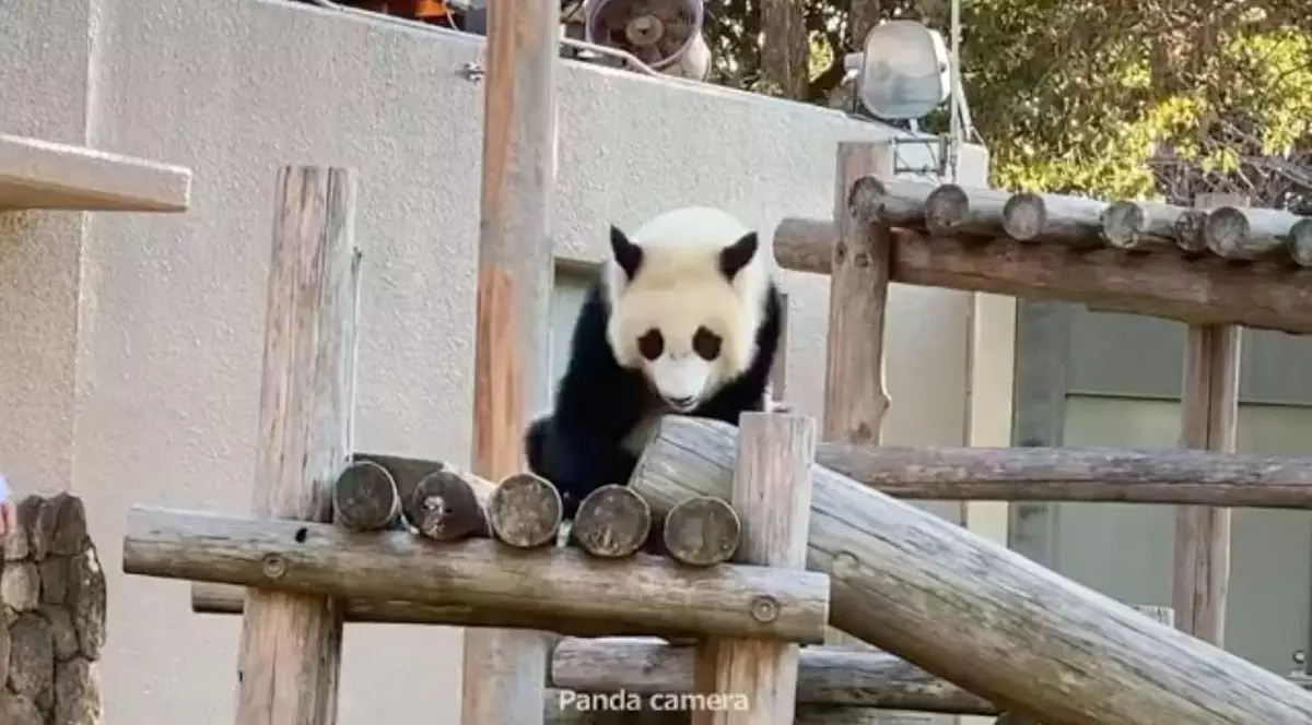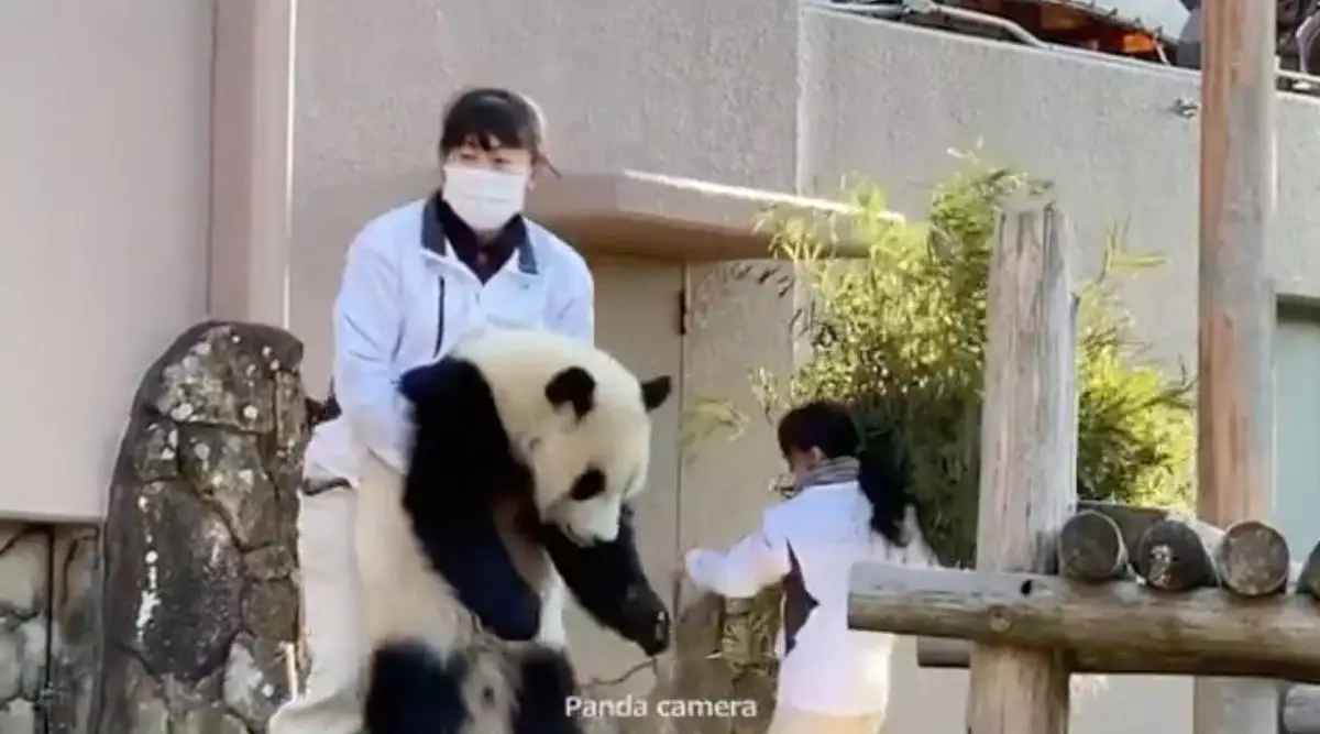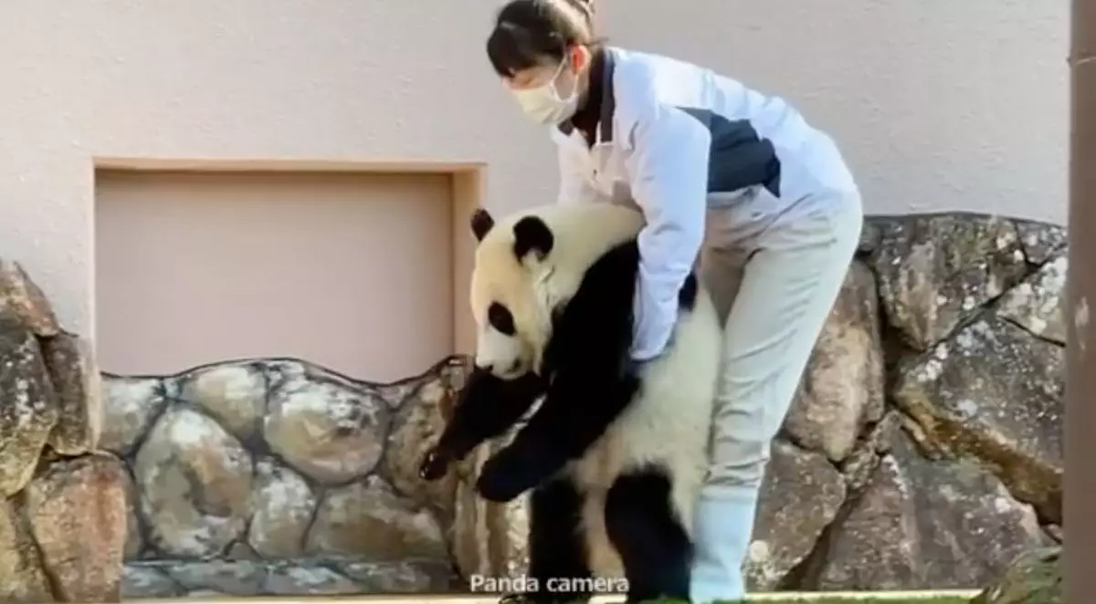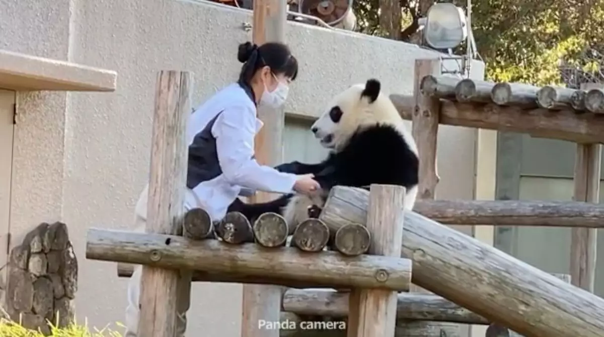 日前熊貓寶寶的放風時間結束後,飼育員準備帶牠回去休息時,牠竟然一屁股坐下並耍起小脾氣,無論飼養員怎樣哄、怎樣拉,牠都不為所動,最後飼養員只好將牠抱下爬架,牠才一臉不情願的跟着飼養員回家。