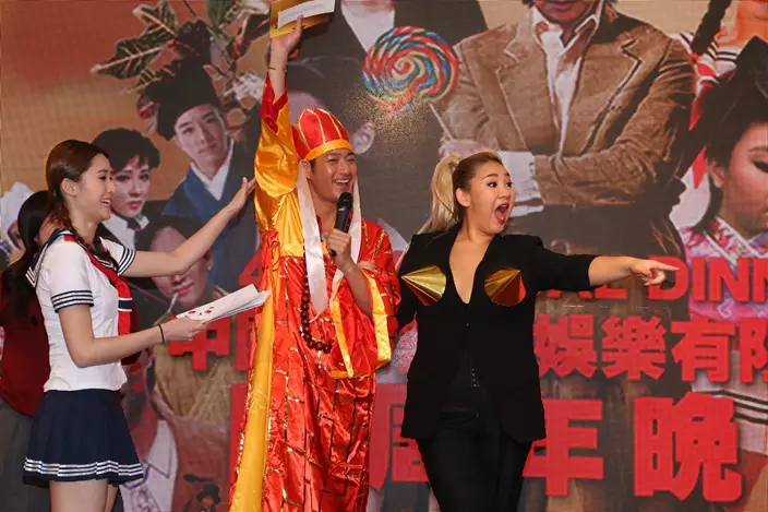 鄭欣宜出席公司周年晚宴活動,主題是「我們的周星星同學經典造型大晒冷」,以《家有囍事》張曼玉飾演「何里玉」造型示人,胸前有兩個「雪糕筒」。