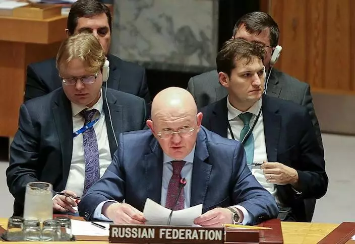 俄羅斯代表涅邊賈指責美國干涉俄羅斯內政,是尋求「麥克風外交的典型例子」。