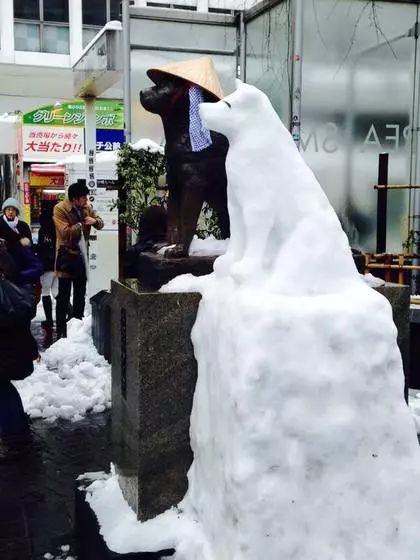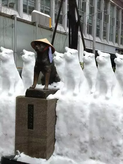 久違的大雪吹襲日本逾個多星期,日本民眾都紛紛爭取機會堆雪。但有民眾驚訝發現一個堆雪作品感動人心,紛紛前往作品前拍照留影。令人感動的就是一隻雪犬,屹立在「忠犬八公」身邊,讓孤零零的「八公」終於有個伴。