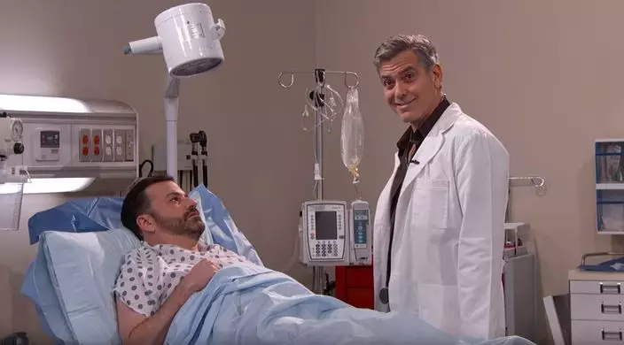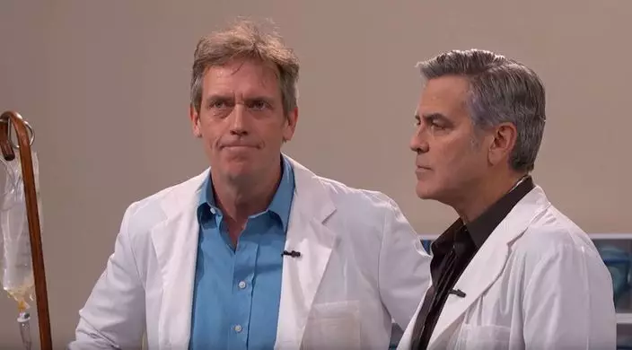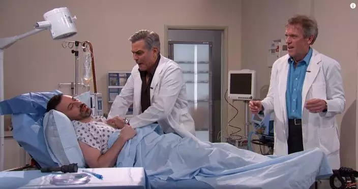 佐治古尼與名嘴基梅爾(Jimmy Kimmel)重演《仁心仁術》情節,他突然指基梅爾失血過多,在無醫護人員協助之際,在另一美劇《醫神》 (House)飾演醫生Gregory House的男星曉萊利(Hugh Laurie)「亂入」幫手。