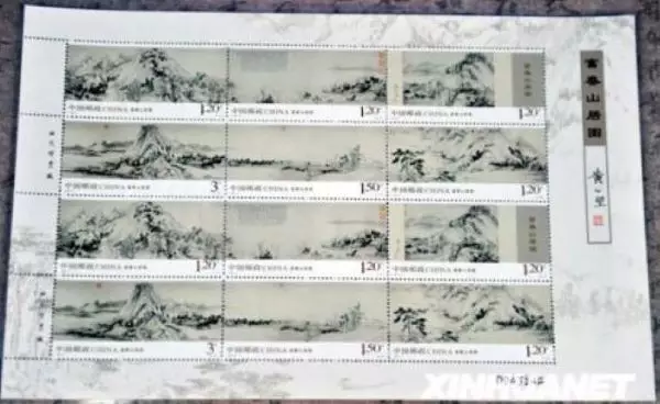 2010年發行、以《富春山居圖》整幅畫卷為藍本的特種郵票。