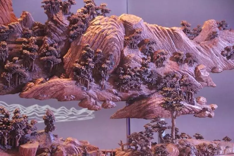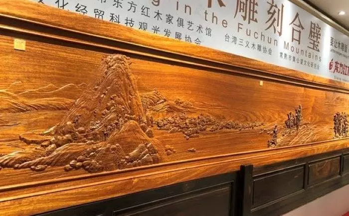 兩岸木雕家共同創作的《富春山居圖》紅木雕刻。
