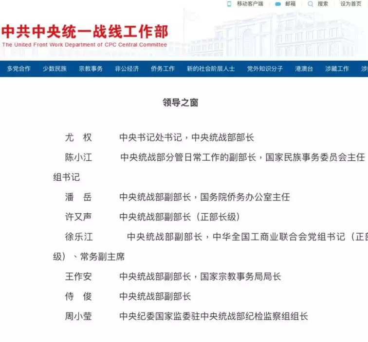 中央統戰部官網證實,陳小江擔任分管日常工作副部長。