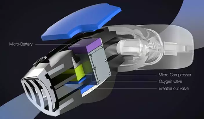 微型裝置的動力來源往往是設計的關鍵。Triton採用最新的微型電池技術,電池體積是普通電池的三十分之一,但充電速度卻快一千倍。高效的電池能保證裝置長時間運作,供給氧氣。